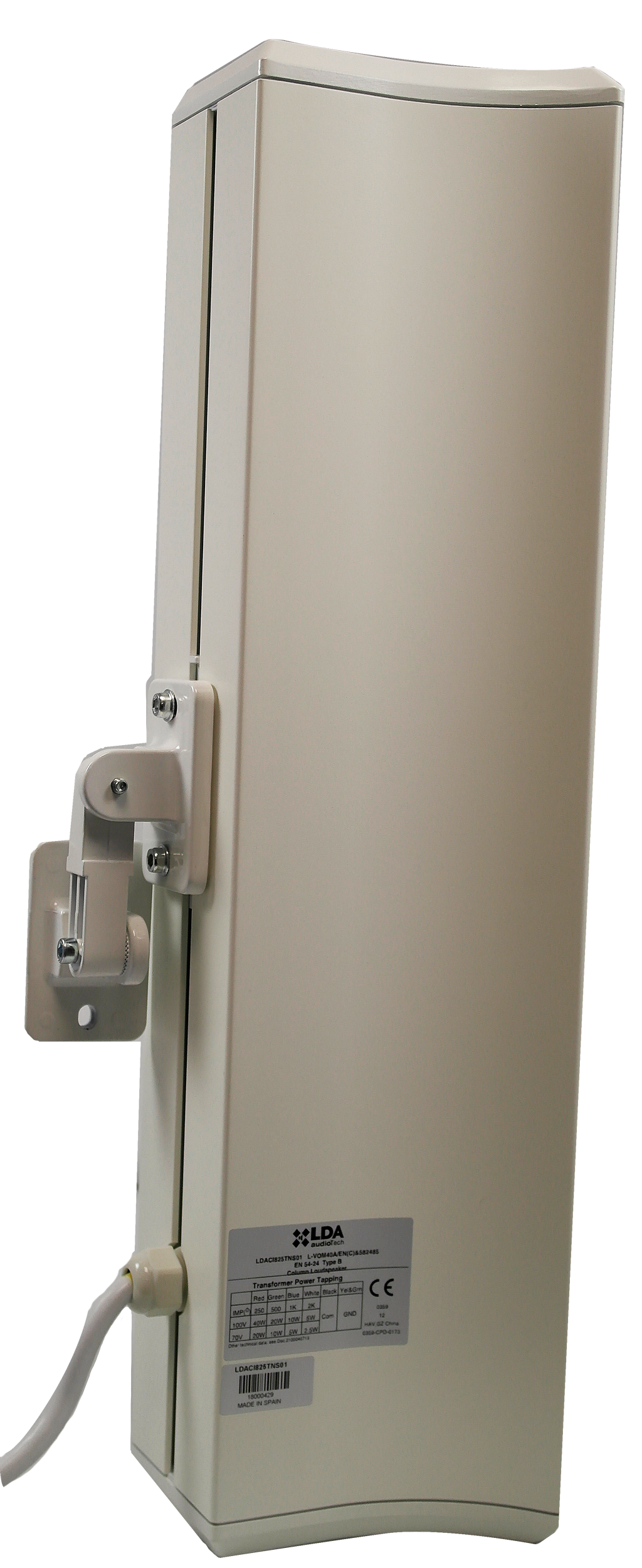 LDA CI-825TN este un difuzor coloană certificat EN54-24 de 40W. Acesta oferă o reproducere a sunetului inteligibilă și de înaltă calitate pentru alarmarea vocală datorită nivelului său ridicat de presiune acustică, distorsiunii reduse și a unui interval larg de răspuns în frecvență.
